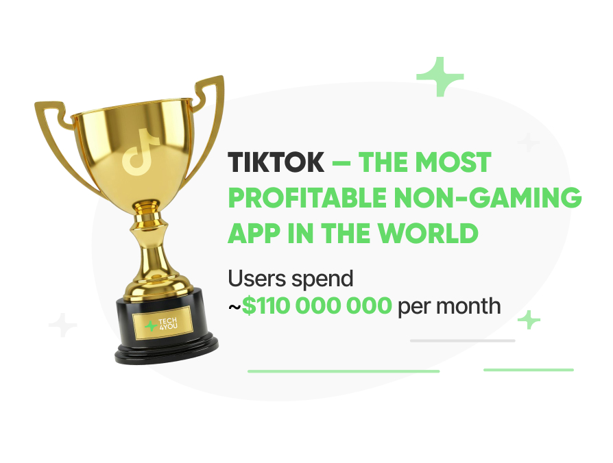 - TikTok users spend ~$110,000,000 per month, thus is makes TikTok the most profitable non-gaming application in the world