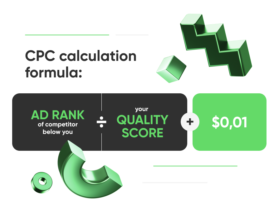 CPC calculation formula: (Ad Rank of competitor below you ÷ your Quality Score) + $0.01