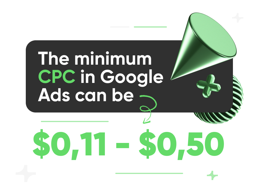 Important: the minimum click price of Google Ads is NOT the main goal. It’s more effective improving to focus on improving the quality of ads and pages, excluding ineffective keywords, and adjusting bids strategically.