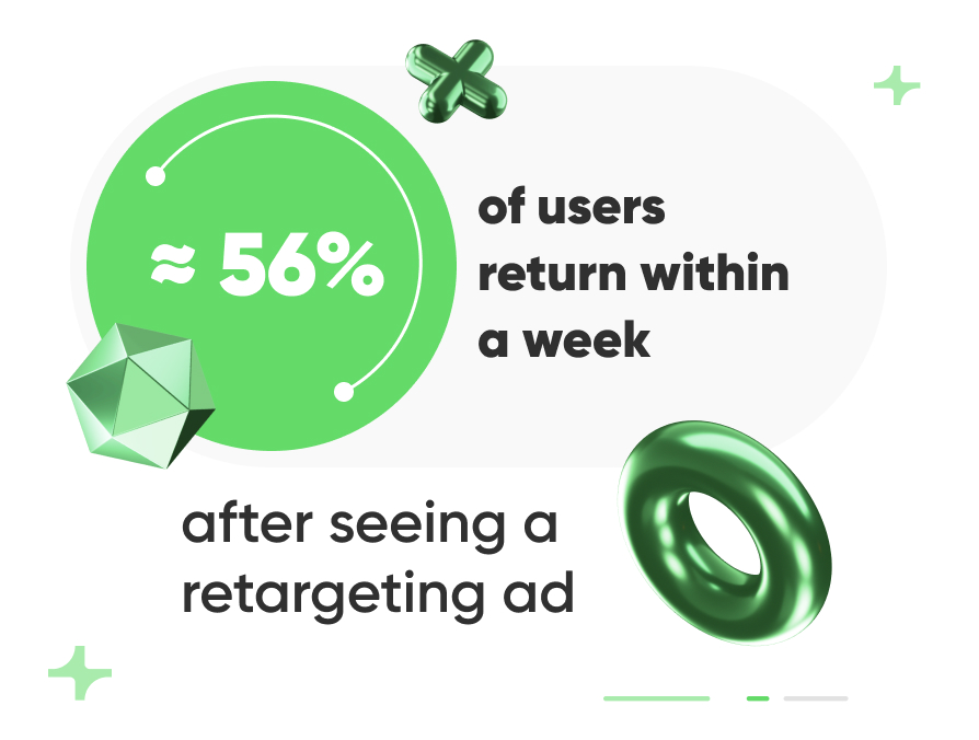 - ≈ 56% of users return within a week after seeing a retargeting ad