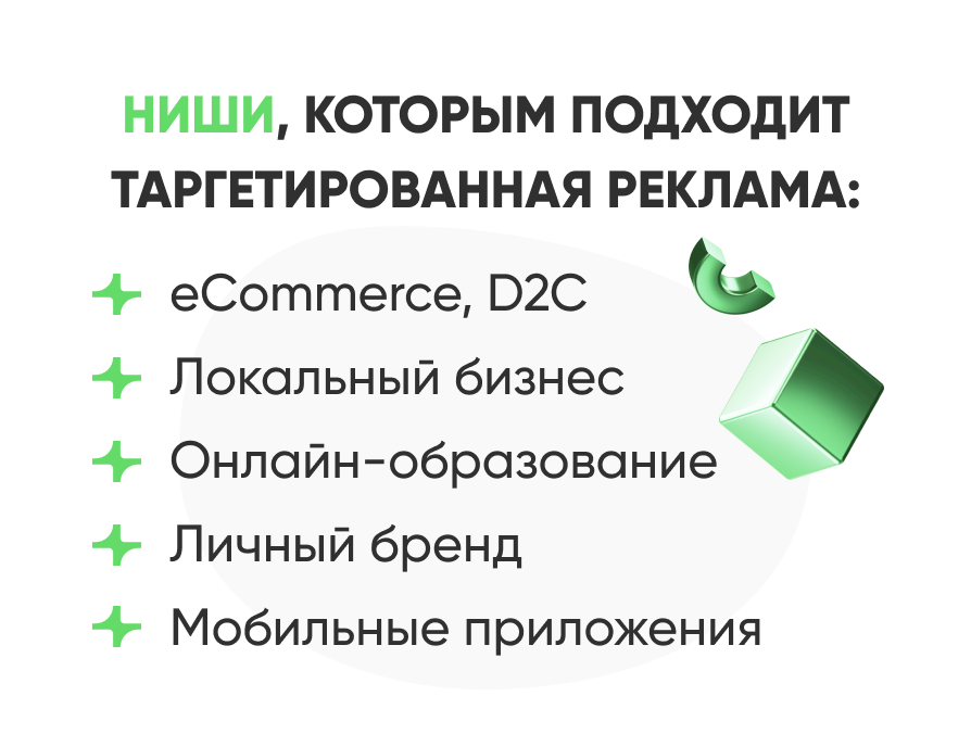 Ниши, в которых следует использовать возможности таргетированной рекламы, и это будет эффективно: