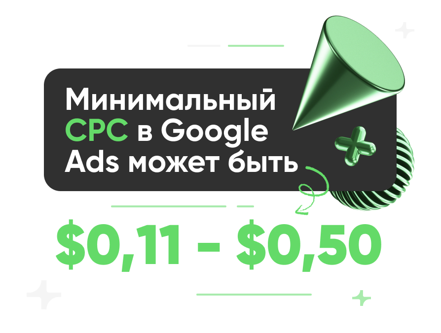 - Минимальная цена клика Google Ads – некоторые исследования указывают, что CPC может быть $0,11–$0,50 (при очень низкой конкуренции или длинных ключевых словах)