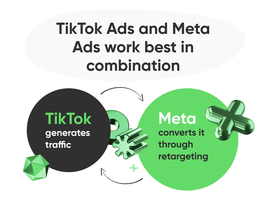 The best results for businesses come from a combination of these two promotion methods. For example, when TikTok Ads generates traffic and Meta then converts it through retargeting.