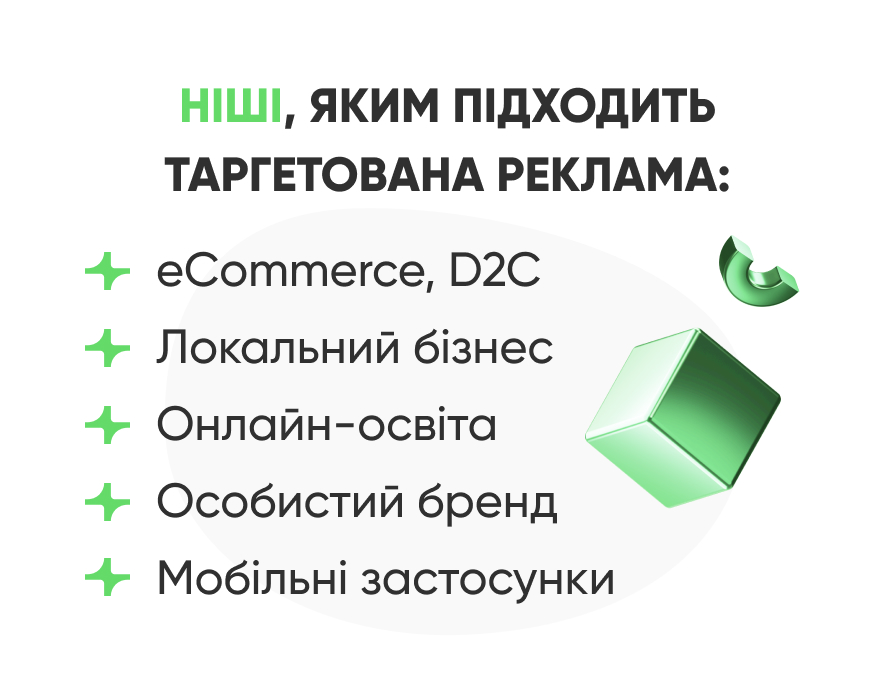 Ніші, у яких варто використовувати можливості таргетованої реклами, і це буде ефективно: