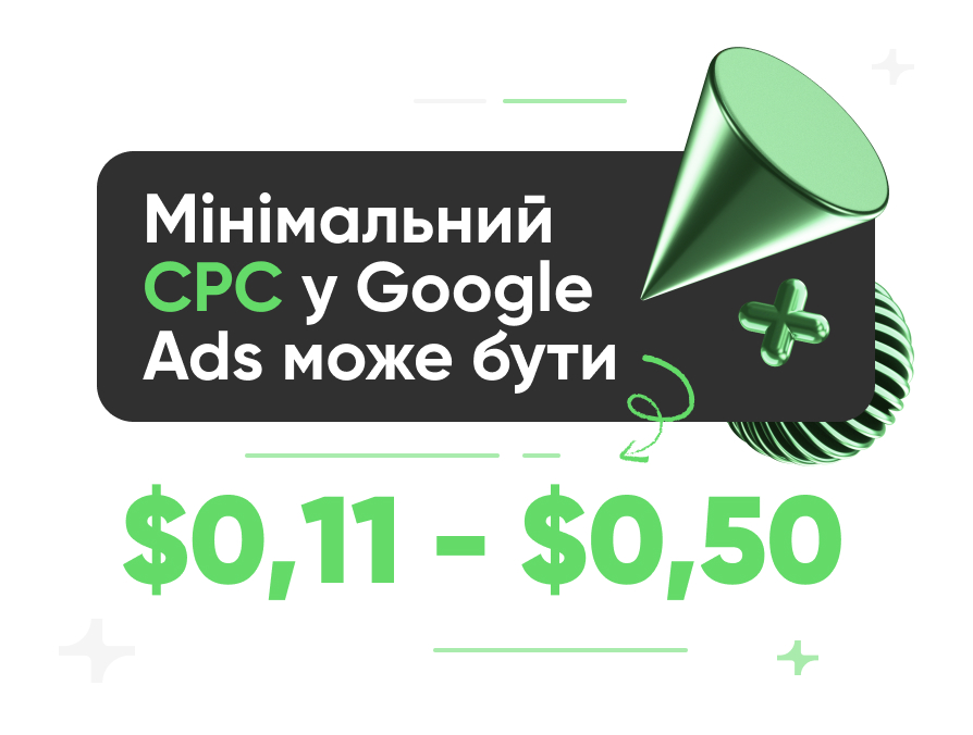 - Мінімальна ціна кліка Google Ads — деякі дослідження вказують, що CPC може бути $0,11–$0,50 (при дуже низькій конкуренції або довгих ключових словах)