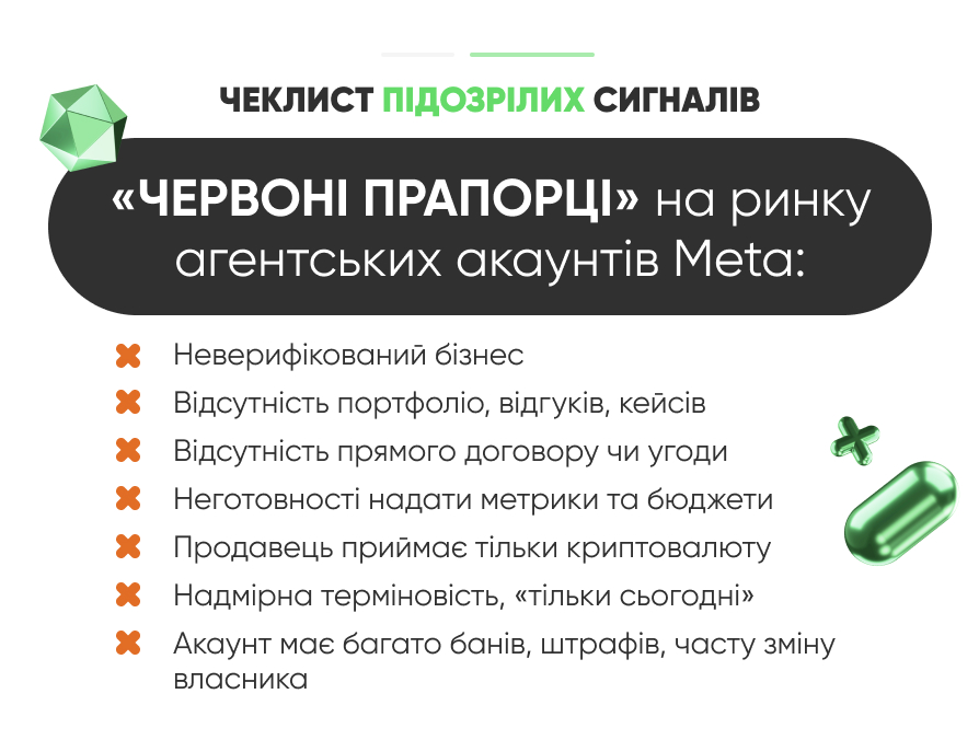 Важливо: агентські акаунти НЕ продаються офіційно, тому будь-які пропозиції «купити агентський акаунт Facebook» мають викликати сильну підозру. Це сіра зона з ризиком блокування.