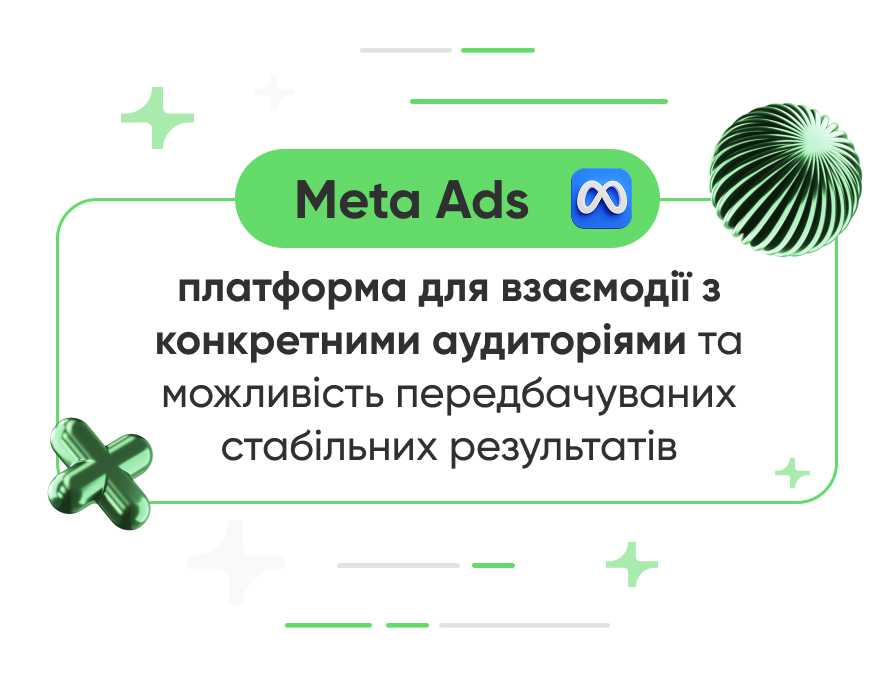Сильні сторони Meta Ads — це можливість точково взаємодіяти з конкретними аудиторіями та сегментами і досягати передбачуваних стабільних результатів від реклами.