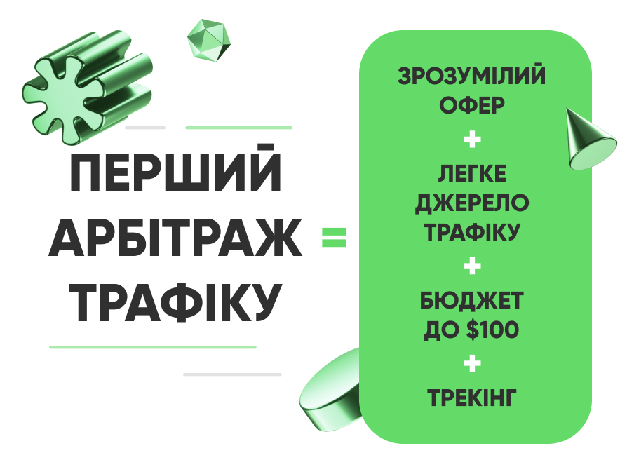 Перший арбітраж трафіку це — зрозумілий офер, легке джерело трафіку, невеликий бюджет до $100 та трекінг.
