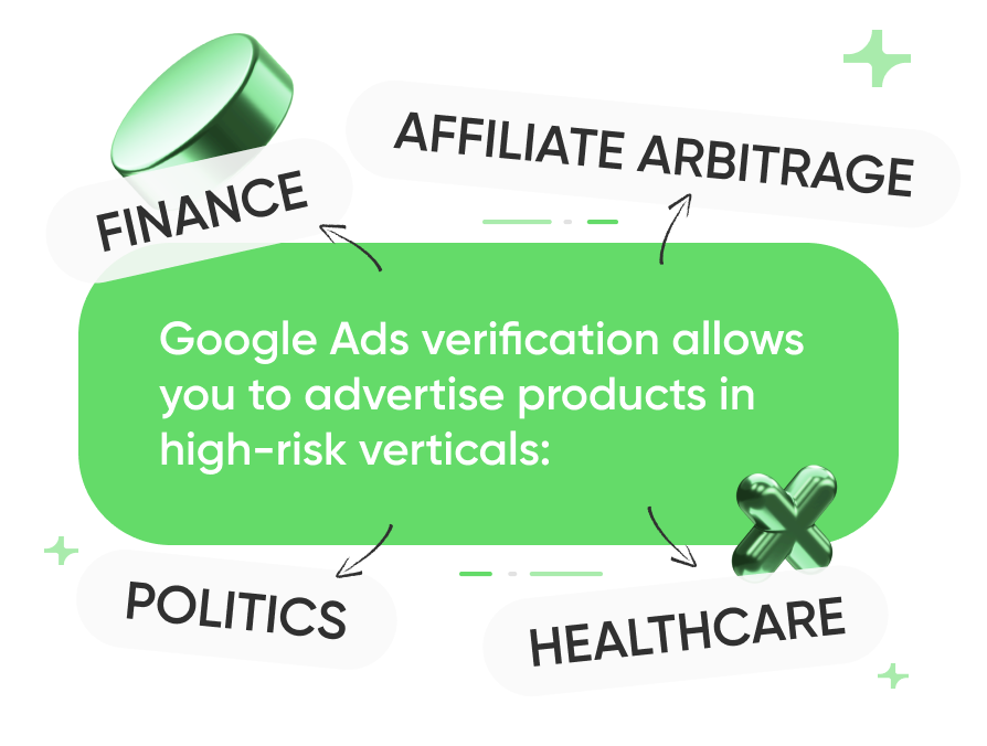 - With Google verified ads, campaigns in higher-risk verticals (finance, affiliate arbitrage, healthcare, and politics) are reviewed more predictably