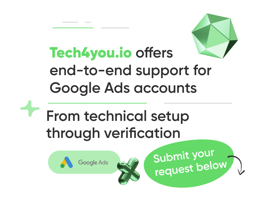 The Tech4you team is ready to help you collect all the necessary documents and complete Google Ads verification process quickly and hassle-free.